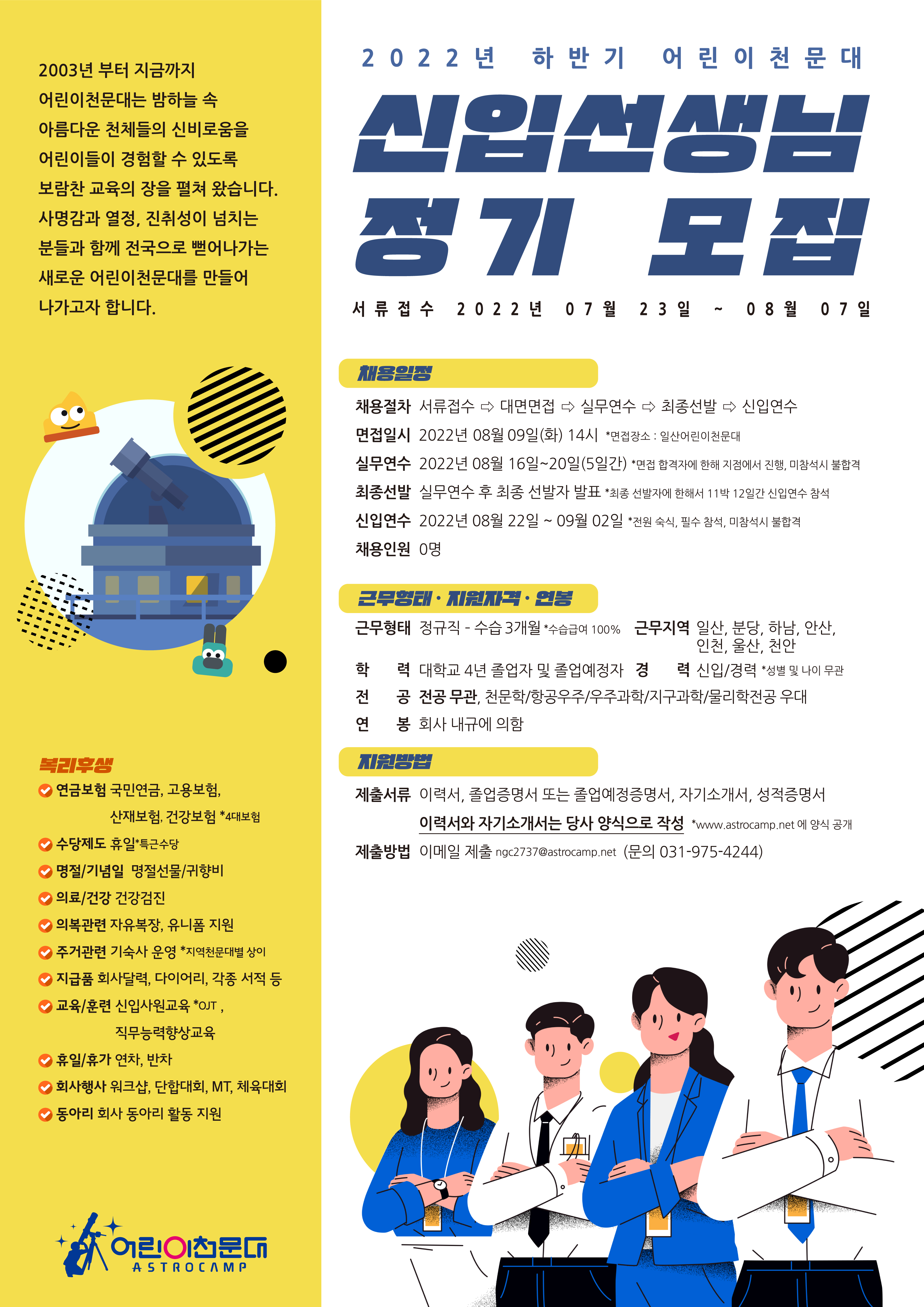 2022년 하반기 신입선생님 모집 공고 [안산어린이천문대] - 마감