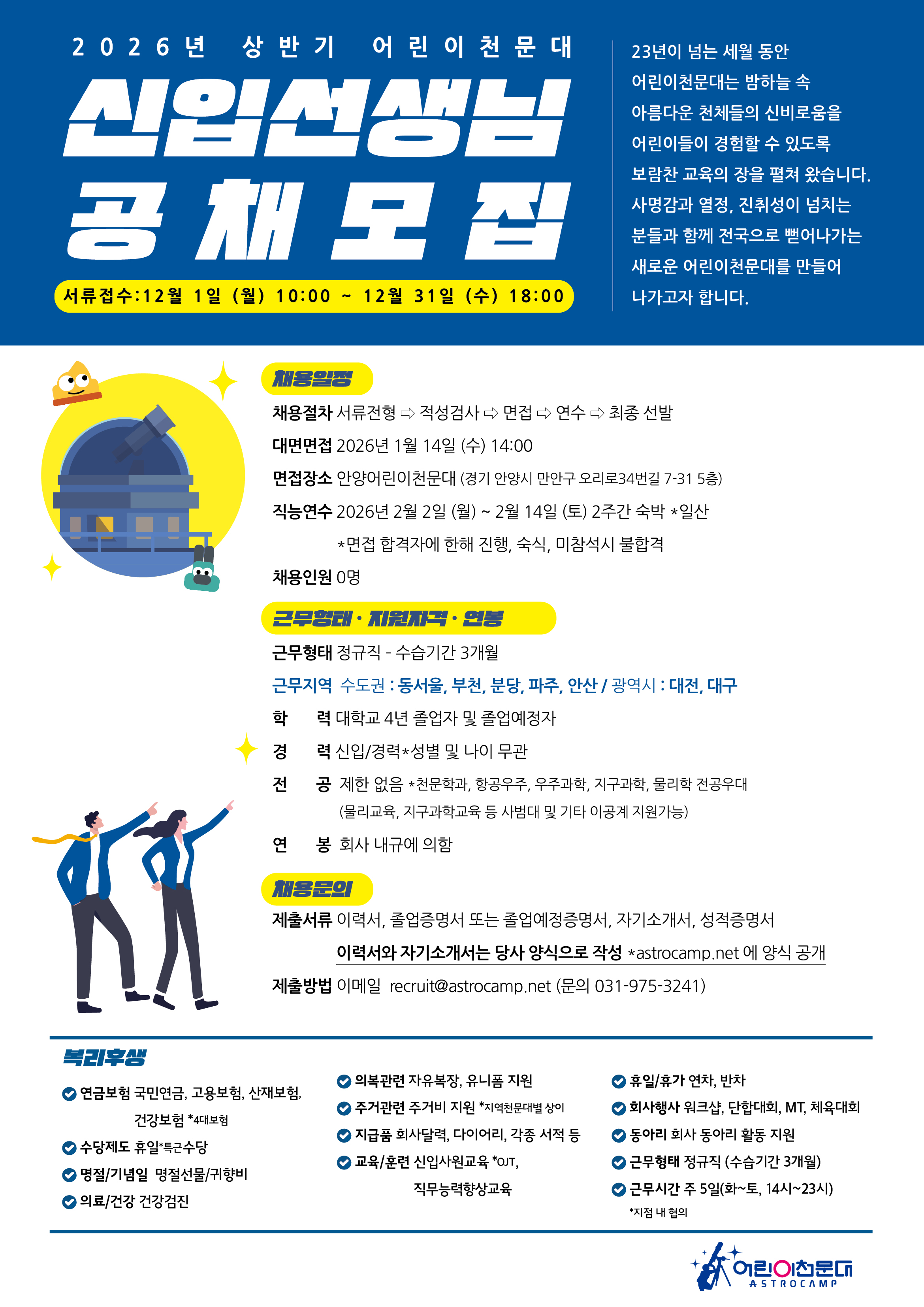 2023년 신입선생님 하반기모집 공고 [인천어린이천문대] - 마감