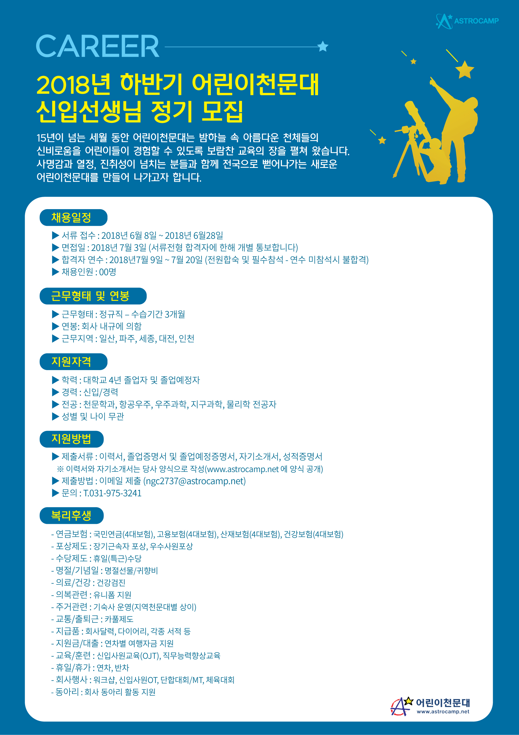 채용담당자: ngc2737@astrocamp.net (상시문의번호: 031-975-4244) |