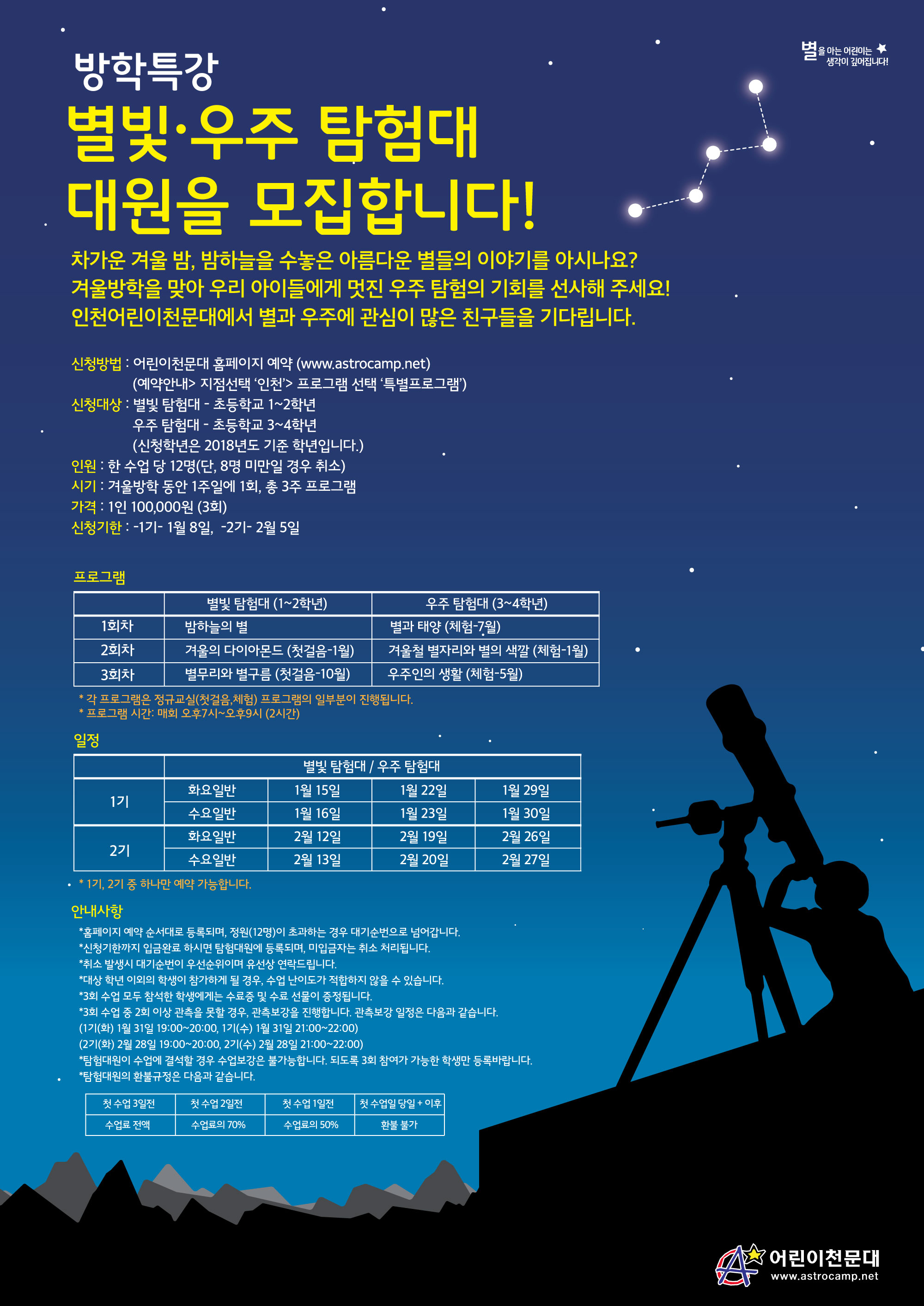 | [인천어린이천문대] 방학특강! 별빛우주탐험대 안내 | |||||