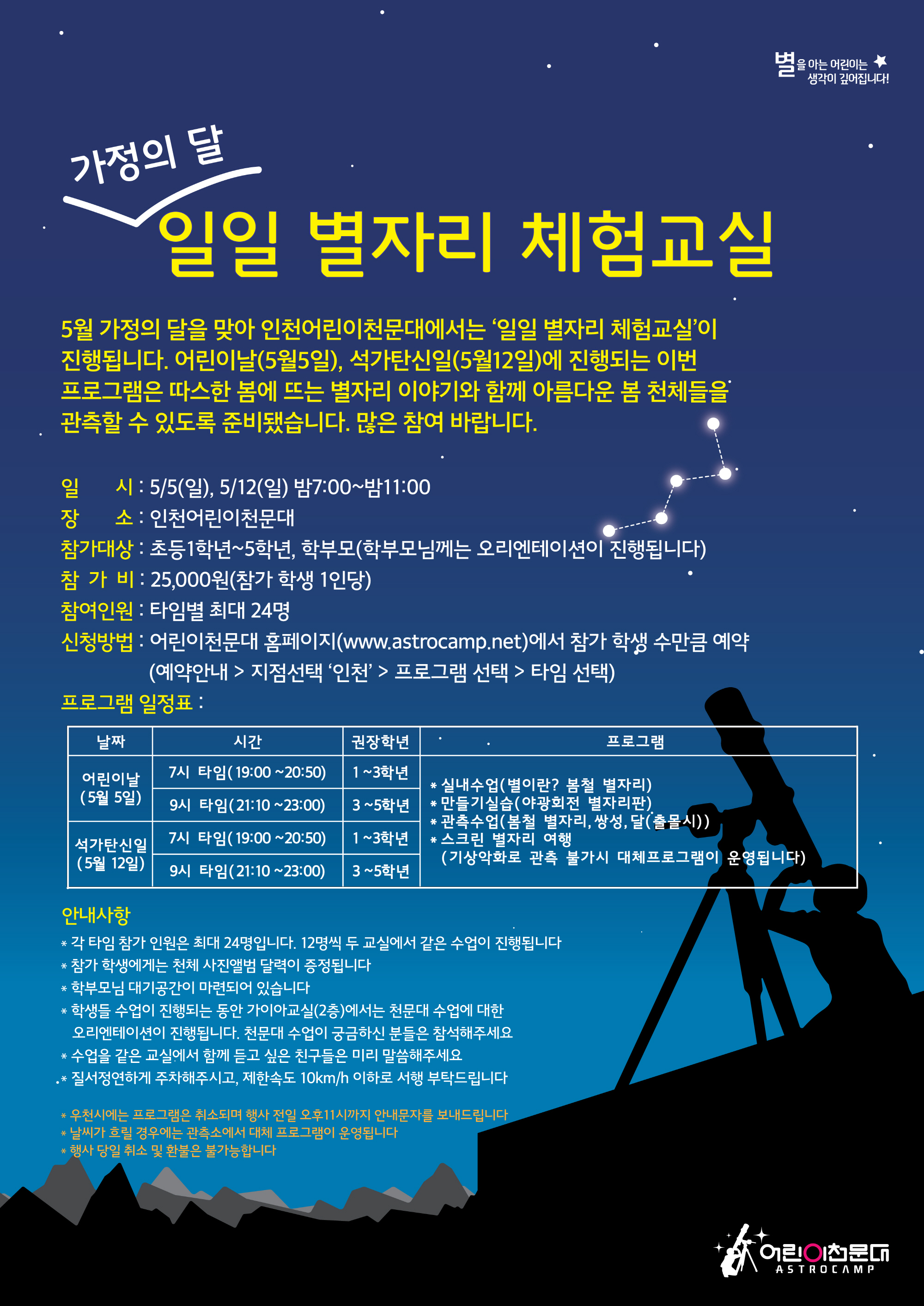 [인천 어린이천문대] 가정의 달 일일별자리 체험교실 안내