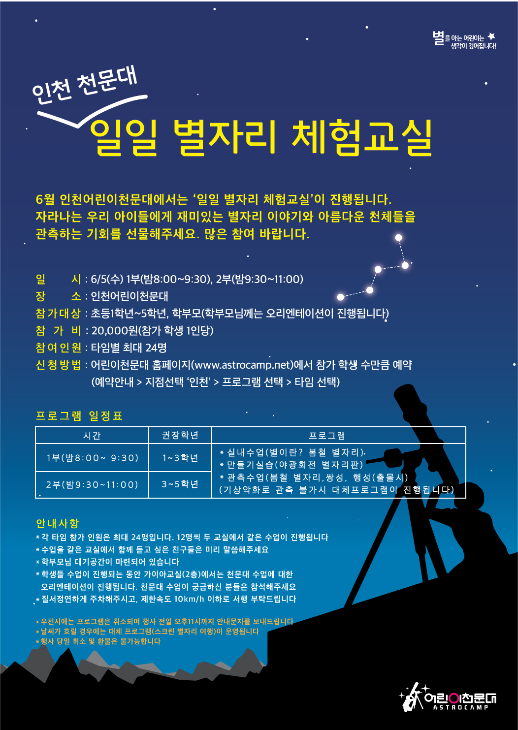 [인천 어린이천문대] 일일별자리 체험교실 안내