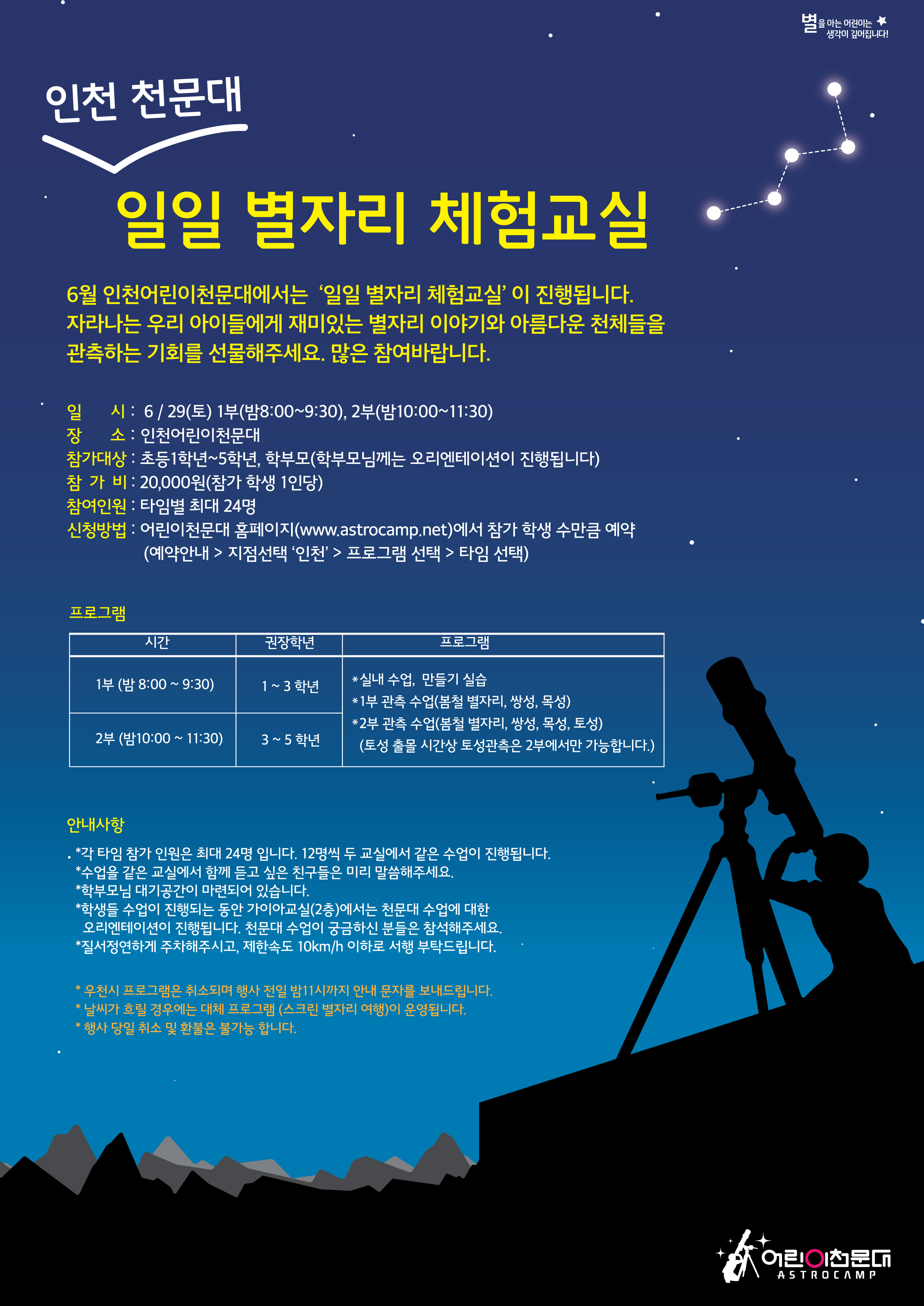 | [인천 어린이천문대] 일일별자리 체험교실 안내 | |||||