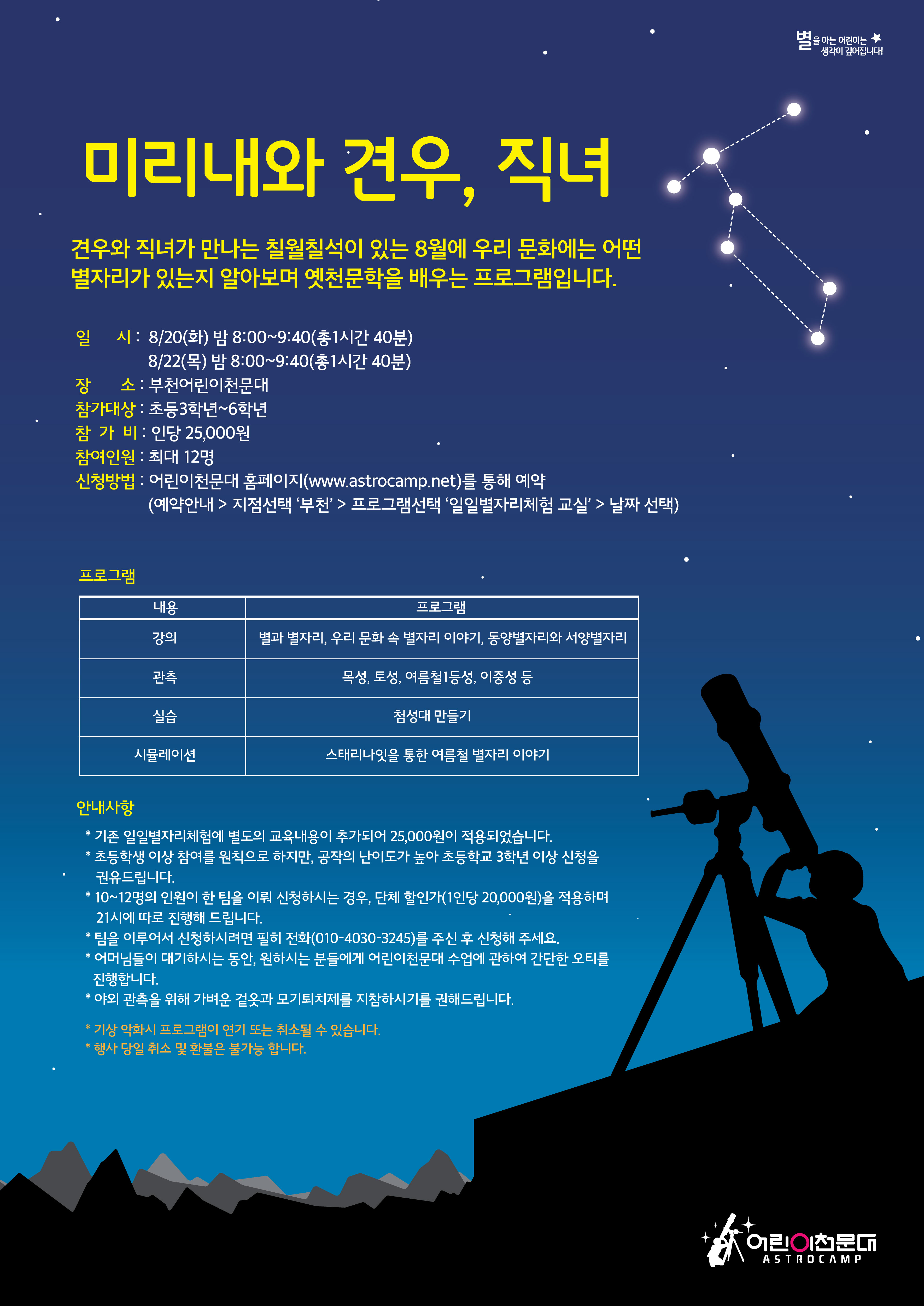 | [부천어린이천문대] 미리내와 견우, 직녀 교실 안내 | |||||