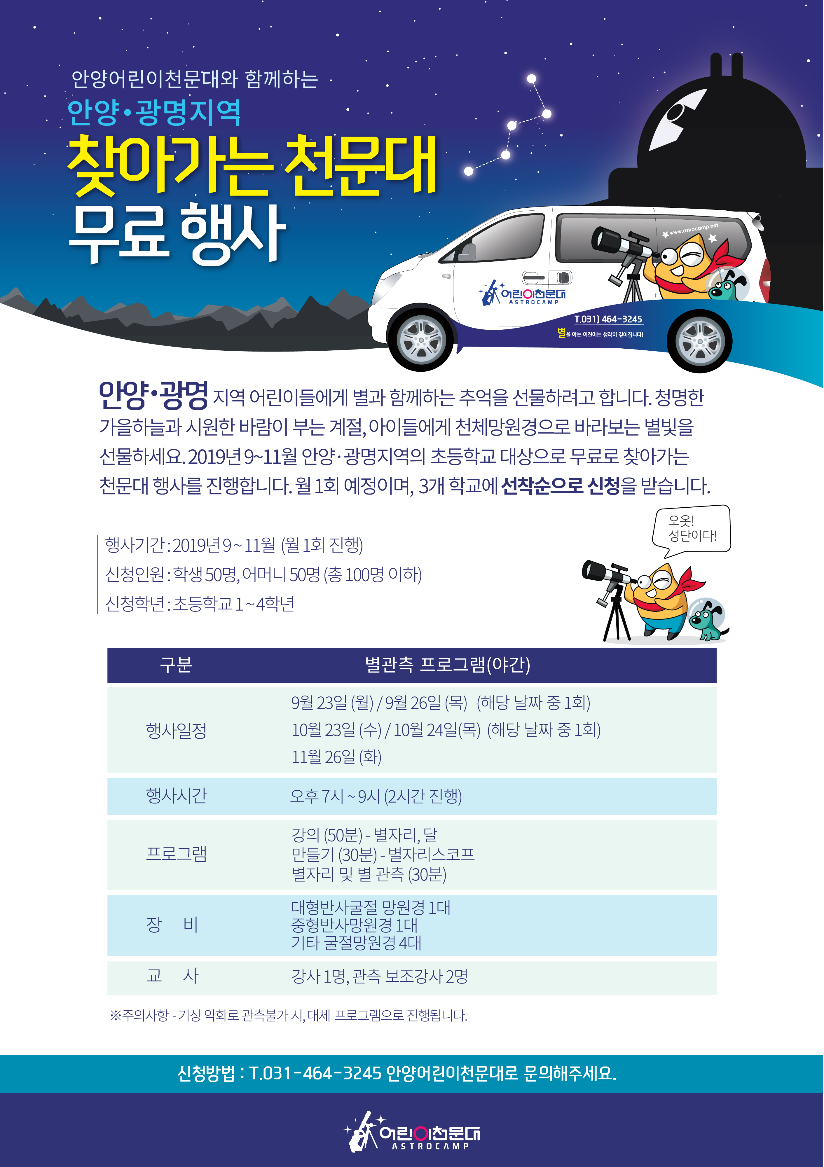 ※ 신청방법: 안양어린이천문대 (031-464-3245)로 문의 및 신청해주세요.