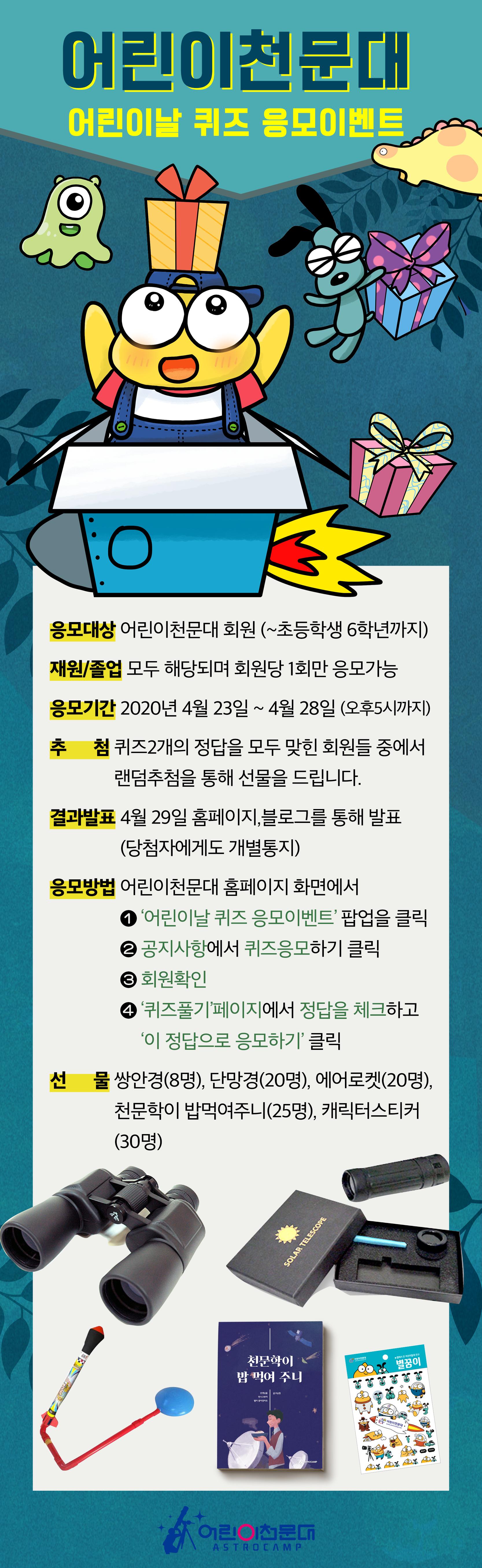 응모이벤트에 대해 궁금한 사항은 master@astrocamp.net 으로 문의해주세요.