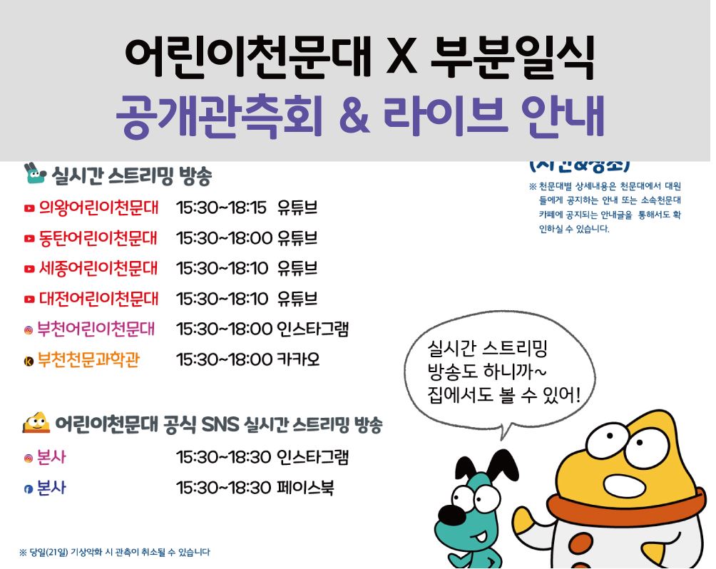 어린이천문대 X 부분일식 공개관측회 & 라이브 안내