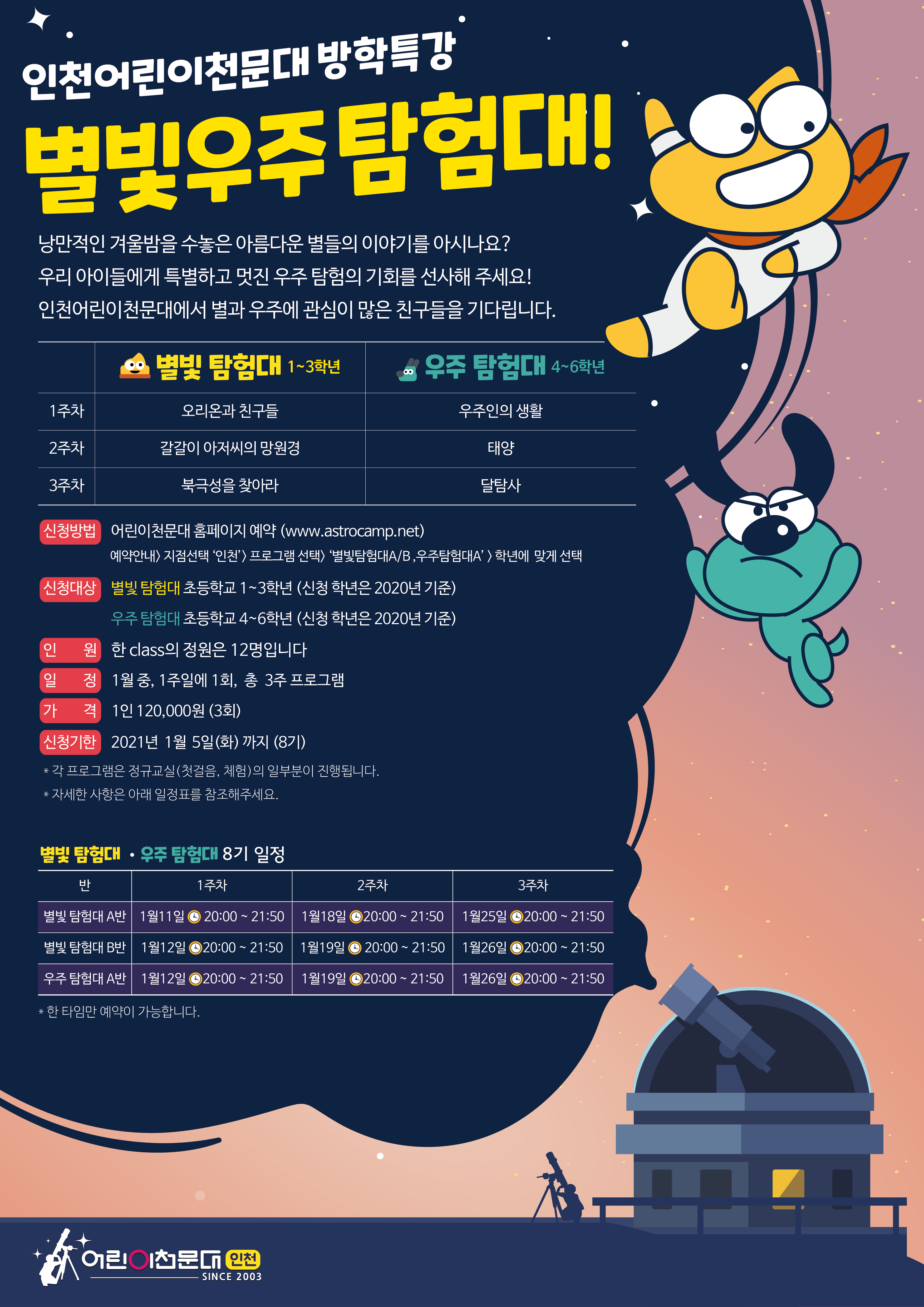 [인천어린이천문대] 별빛ㆍ우주탐험대 모집안내