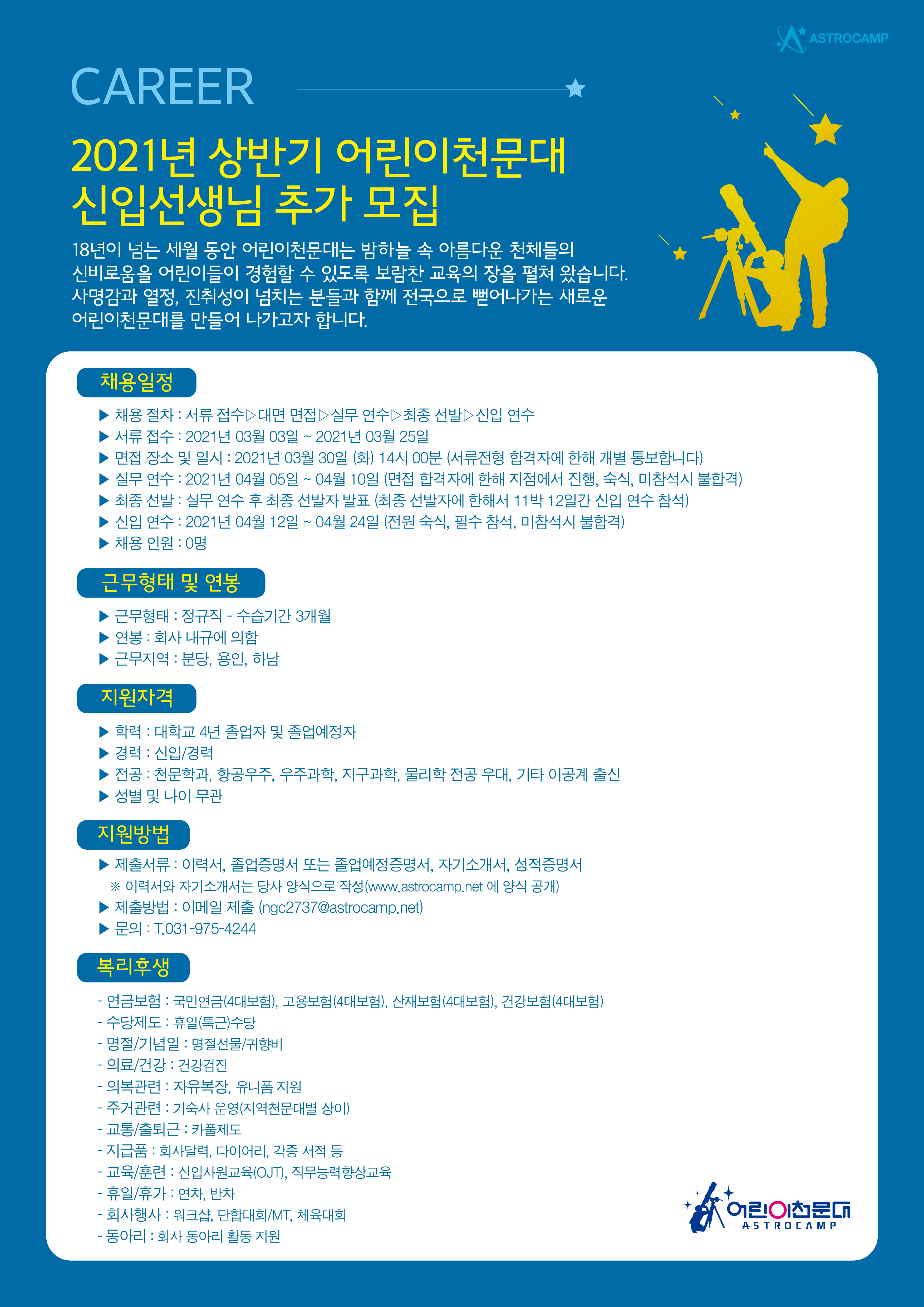채용담당자: ngc2737@astrocamp.net (상시문의번호: 031-975-4244) |