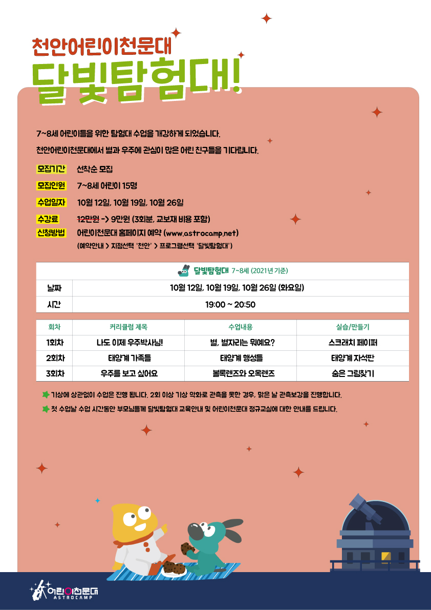 [천안어린이천문대] 별빛ㆍ우주탐험대 모집안내