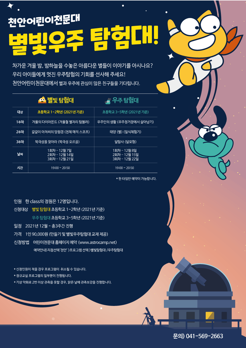 [천안어린이천문대] 별빛ㆍ우주탐험대 모집안내