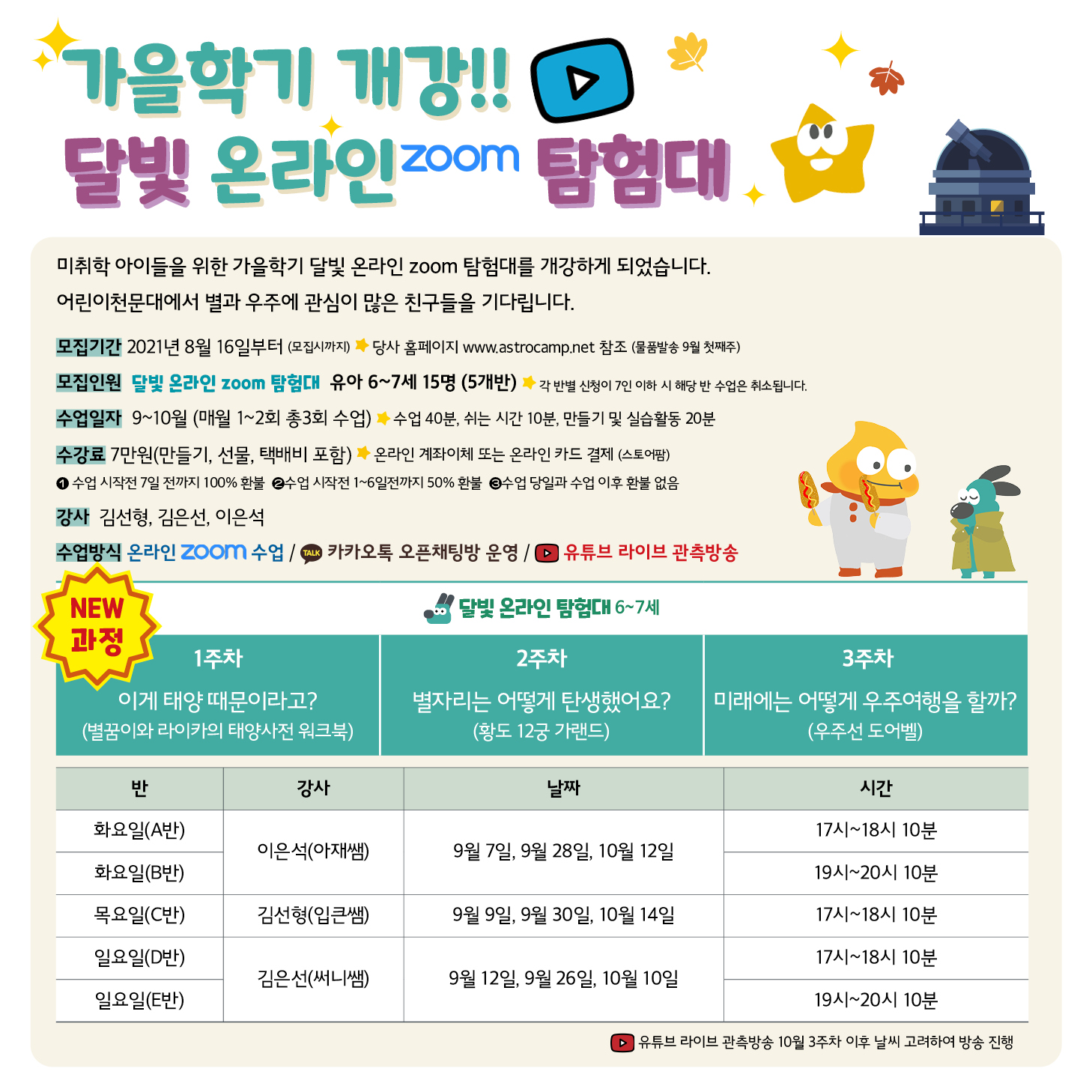 [가을학기] 별빛 온라인 ZOOM 탐험대 신청안내