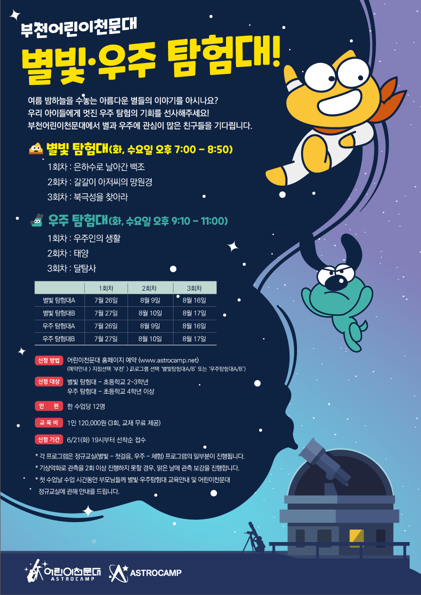 [부천어린이천문대] 별꿈이 과정 모집 안내