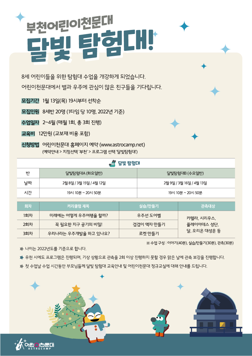 [부천어린이천문대] 22년 별빛-우주 탐험대 모집