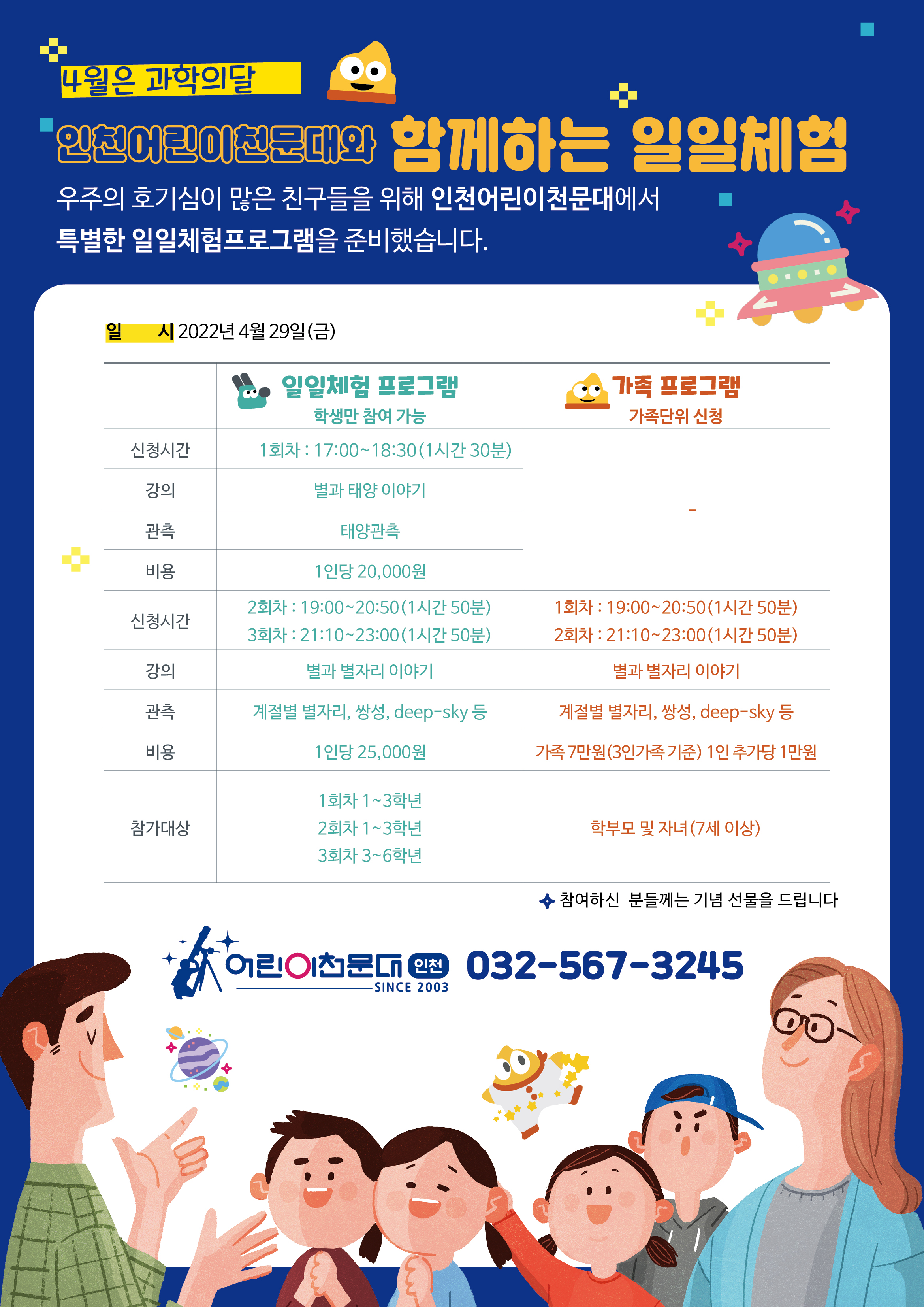 | [인천어린이천문대] 과학의 달 기념, 인천어린이천문대와 함께하는 일일체험 | |||||