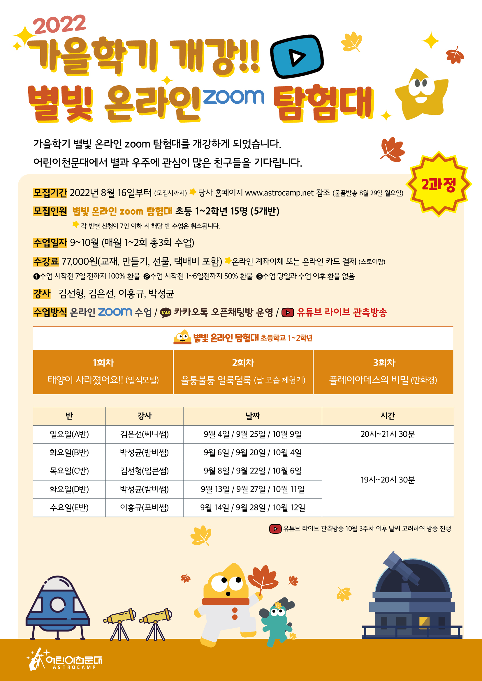 [가을학기] 별빛 온라인 탐험대 정규과정 신청안내
