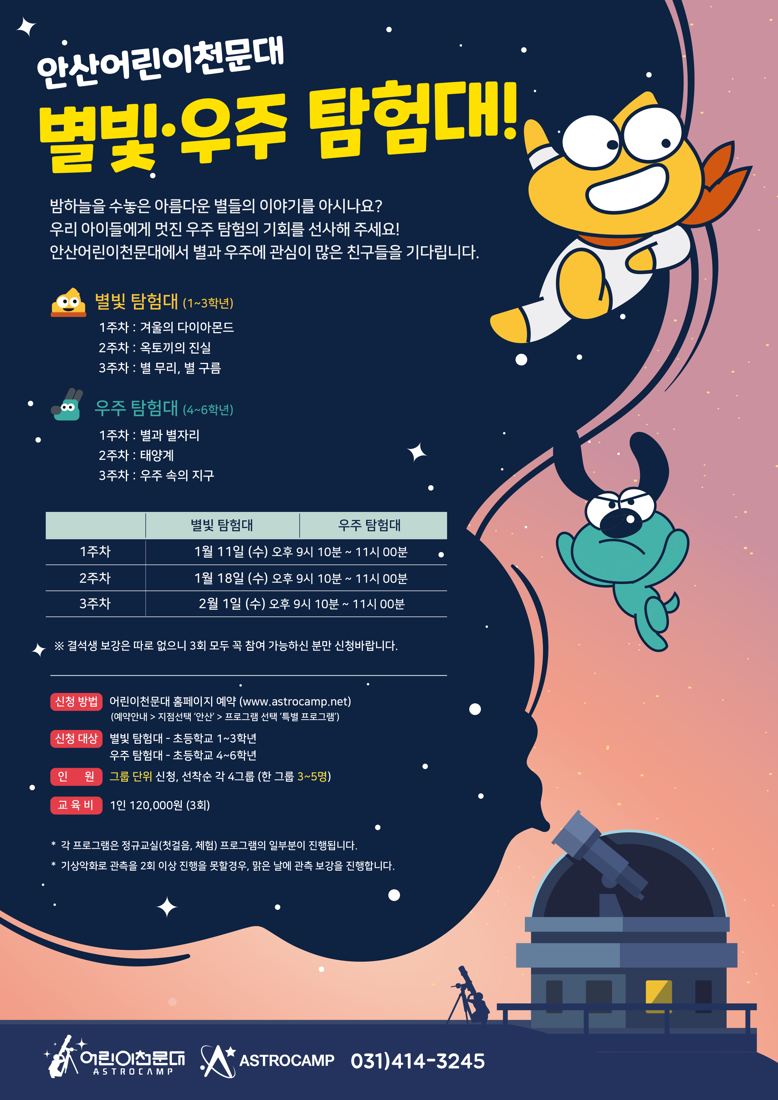 [안산어린이천문대] 별빛·우주탐험대 모집안내