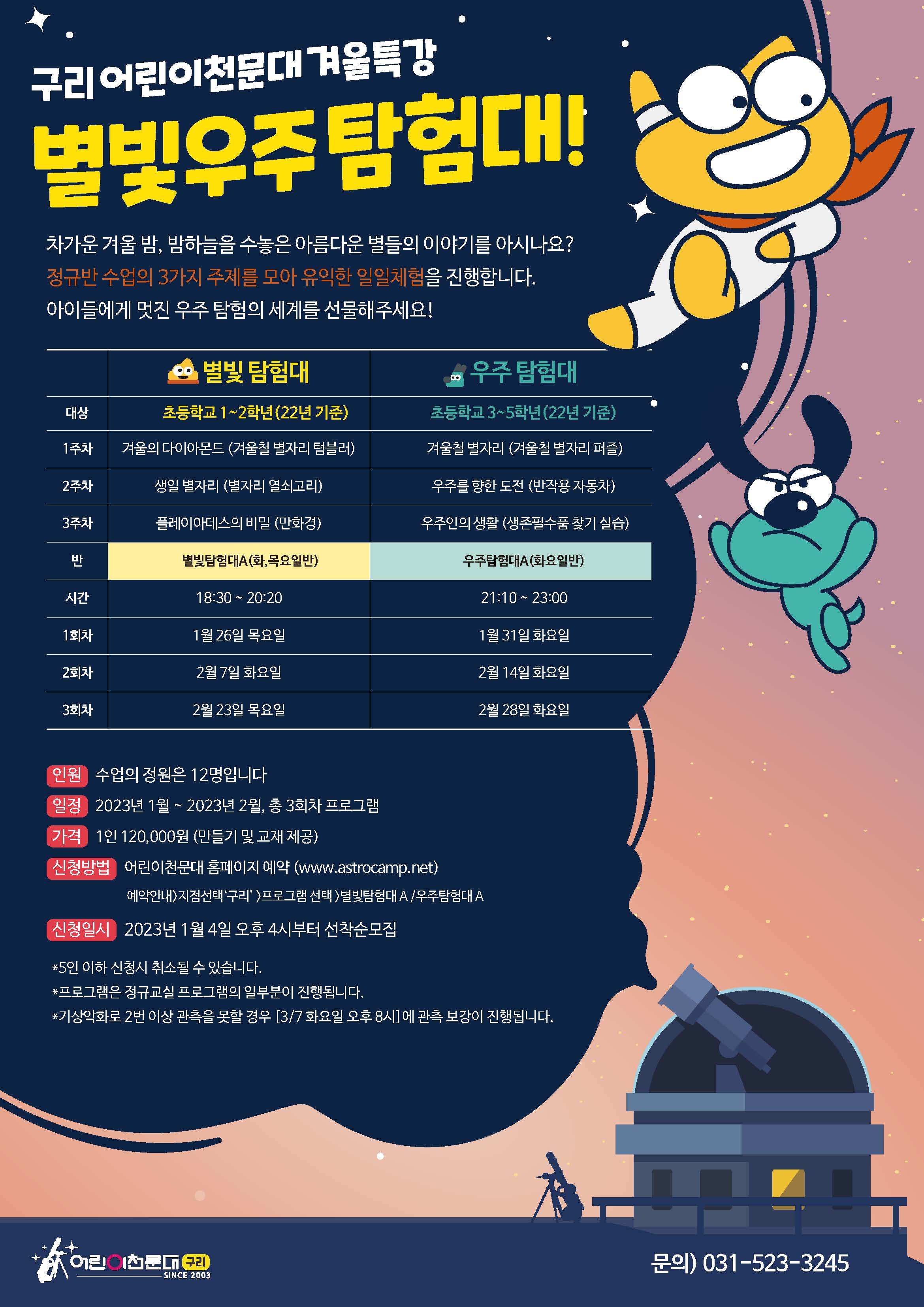 ※ 자세한 상담 및 문의는 구리어린이천문대 (031-523-3245)로 연락주시기 바랍니다.
