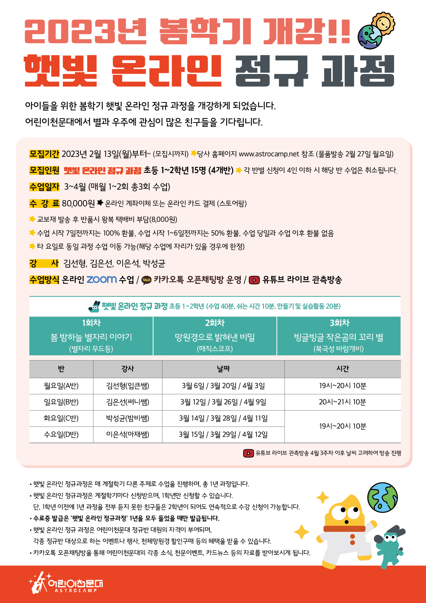 [봄학기] 별빛 온라인 정규과정 신청안내