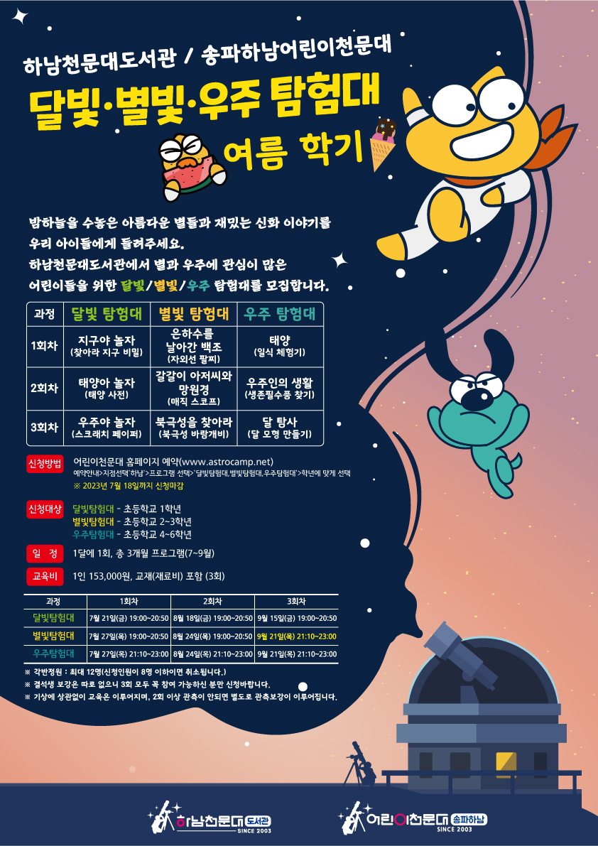 [하남천문대 도서관] 달빛·별빛·우주탐험대 모집안내
