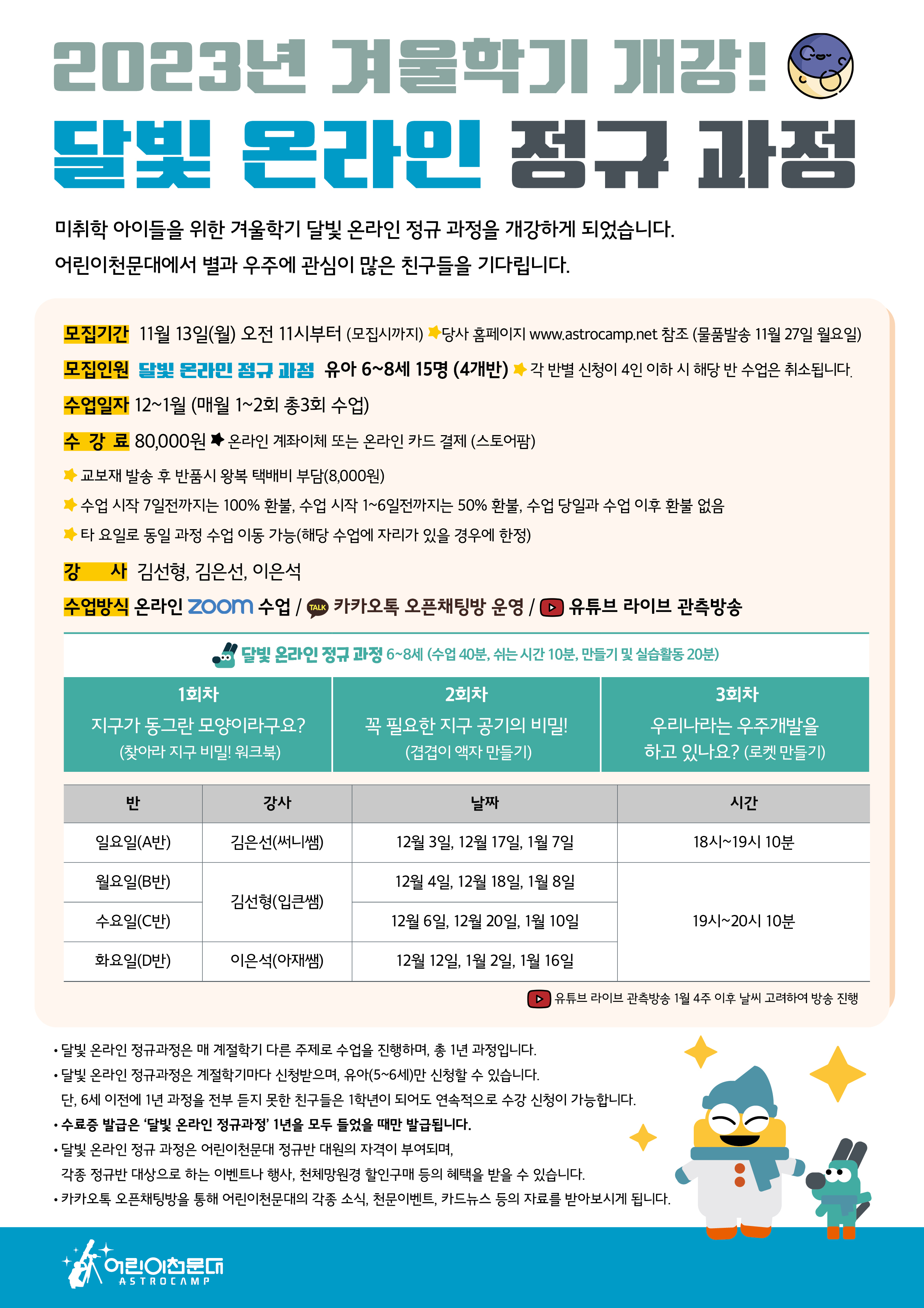 [겨울학기] 별빛 온라인 정규과정 신청안내