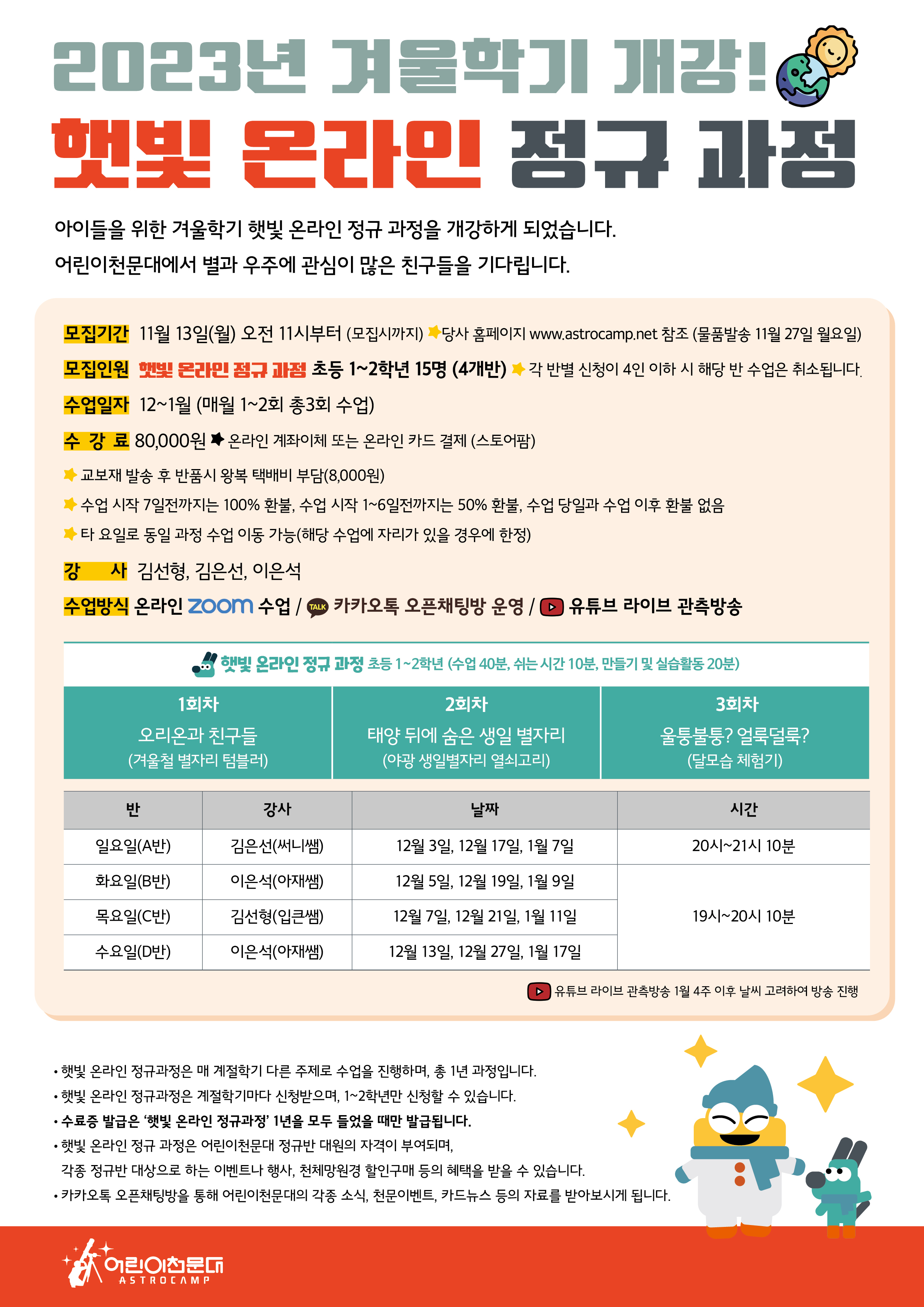 [겨울학기] 별빛 온라인 정규과정 신청안내