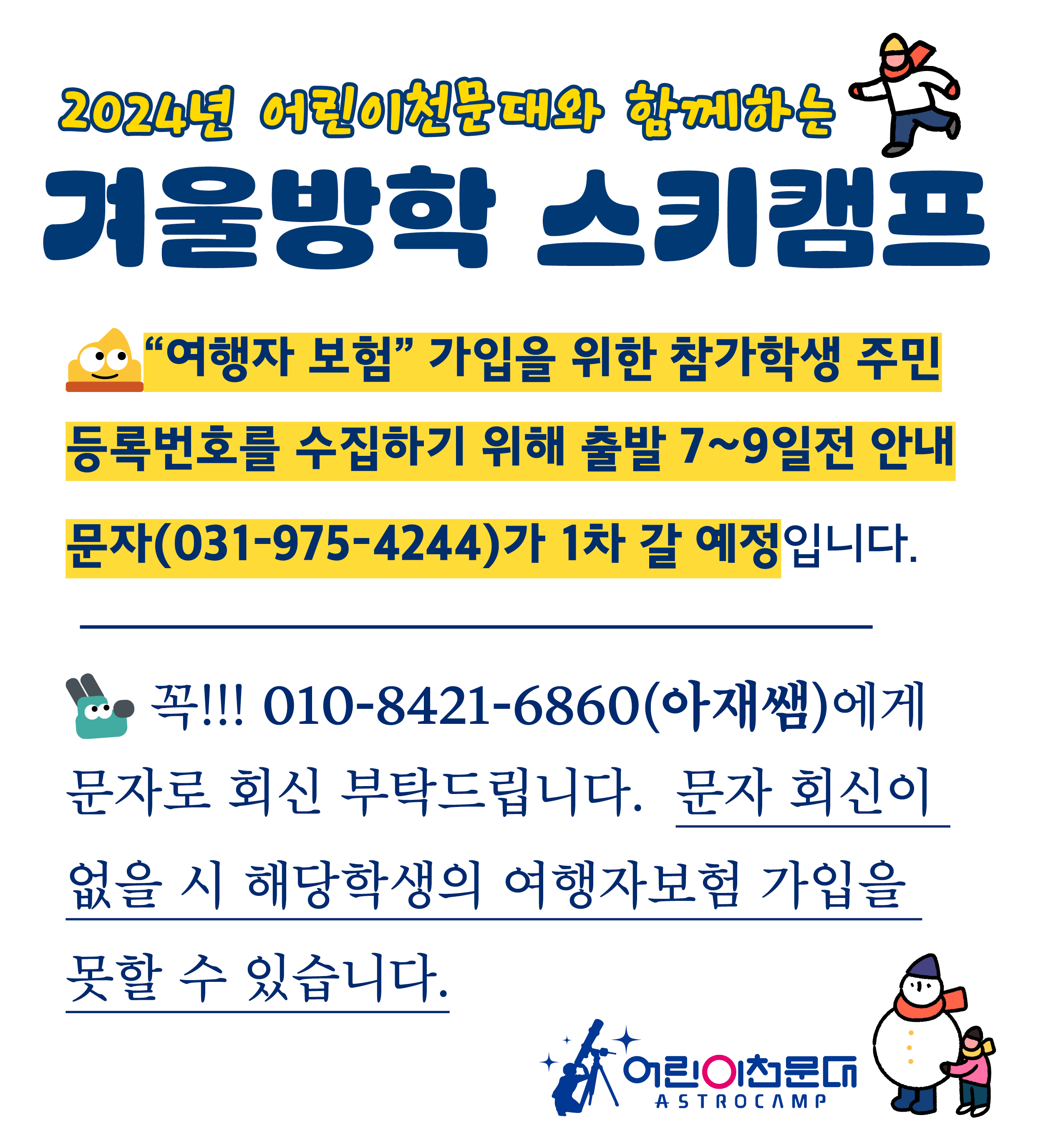 어린이천문대와 함께하는 2024 겨울방학 스키캠프(마감)