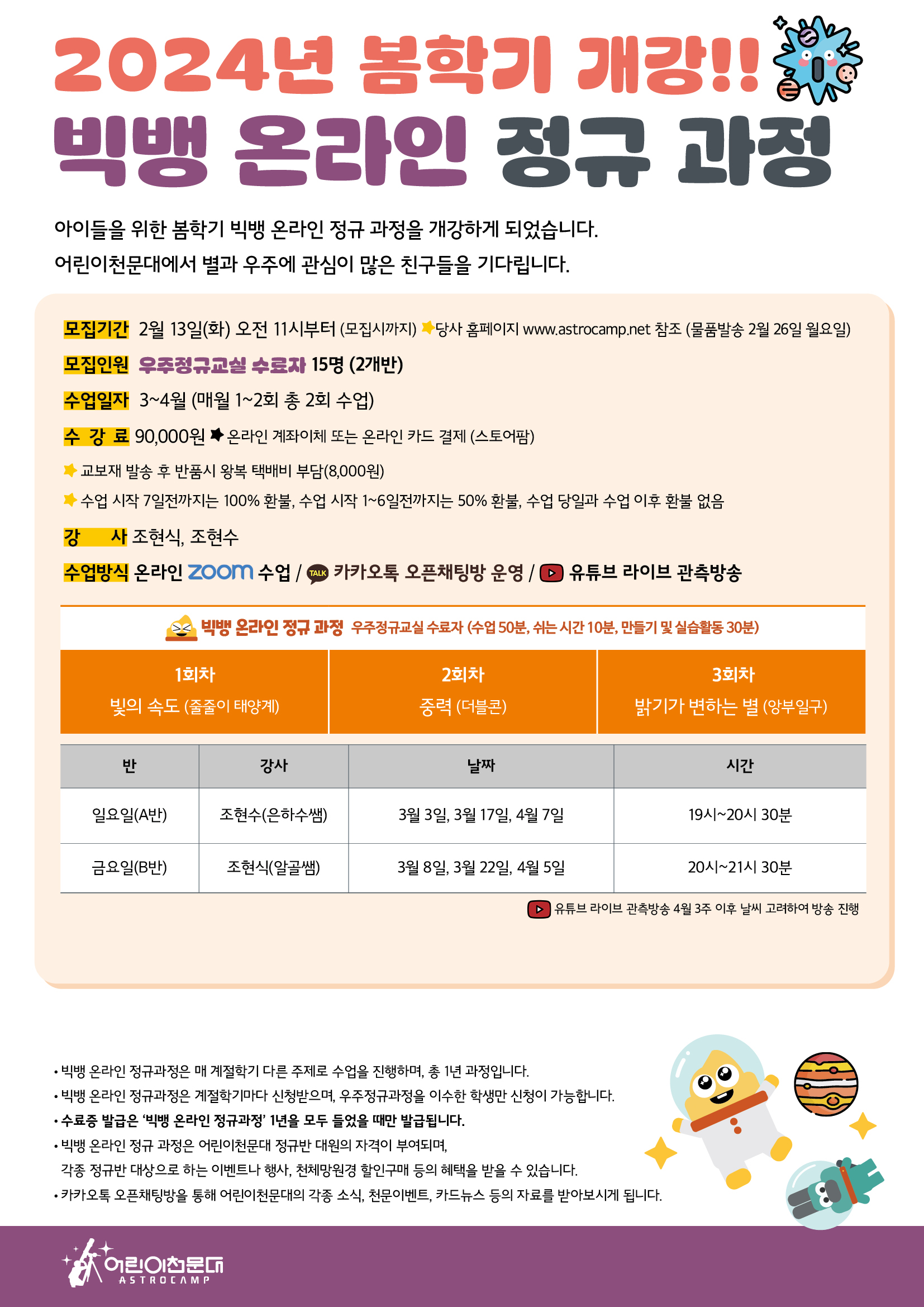 [봄학기] 우주 온라인 정규 과정 안내