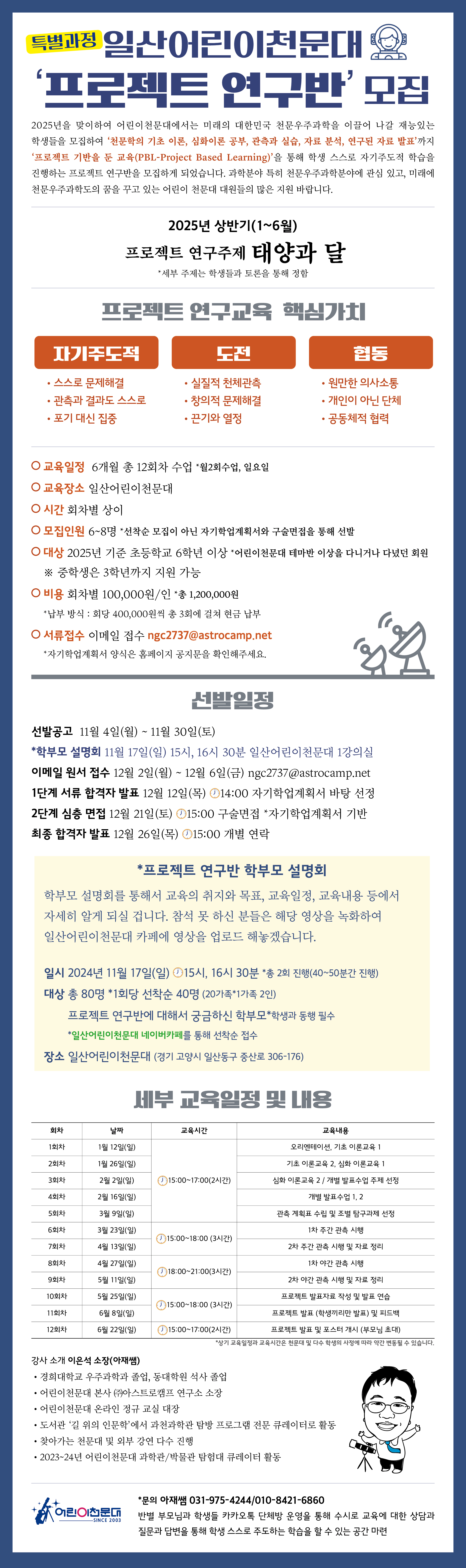 [일산어린이천문대]프로젝트연구반 모집 안내