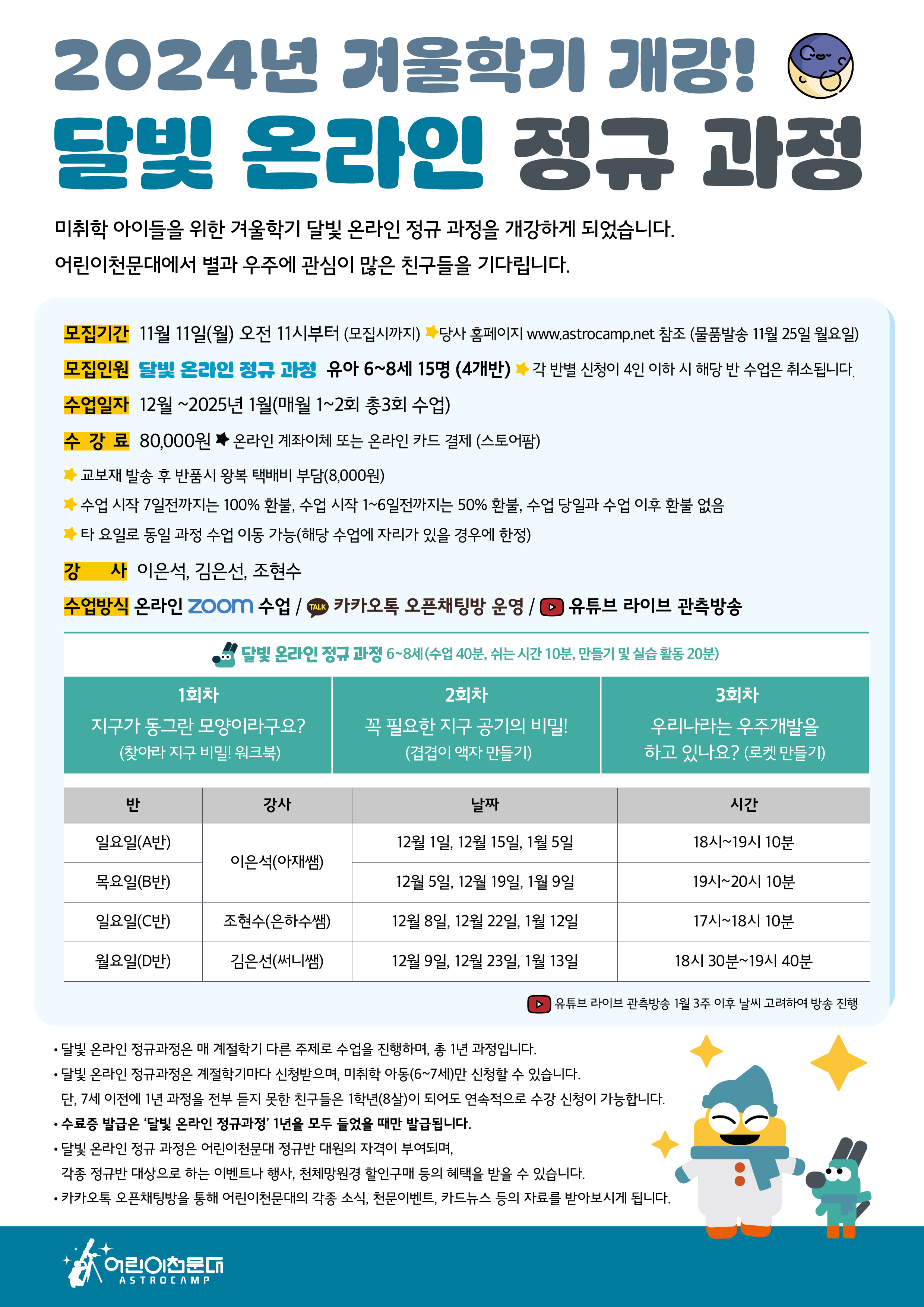 [겨울학기] 별빛 온라인 정규 과정 안내