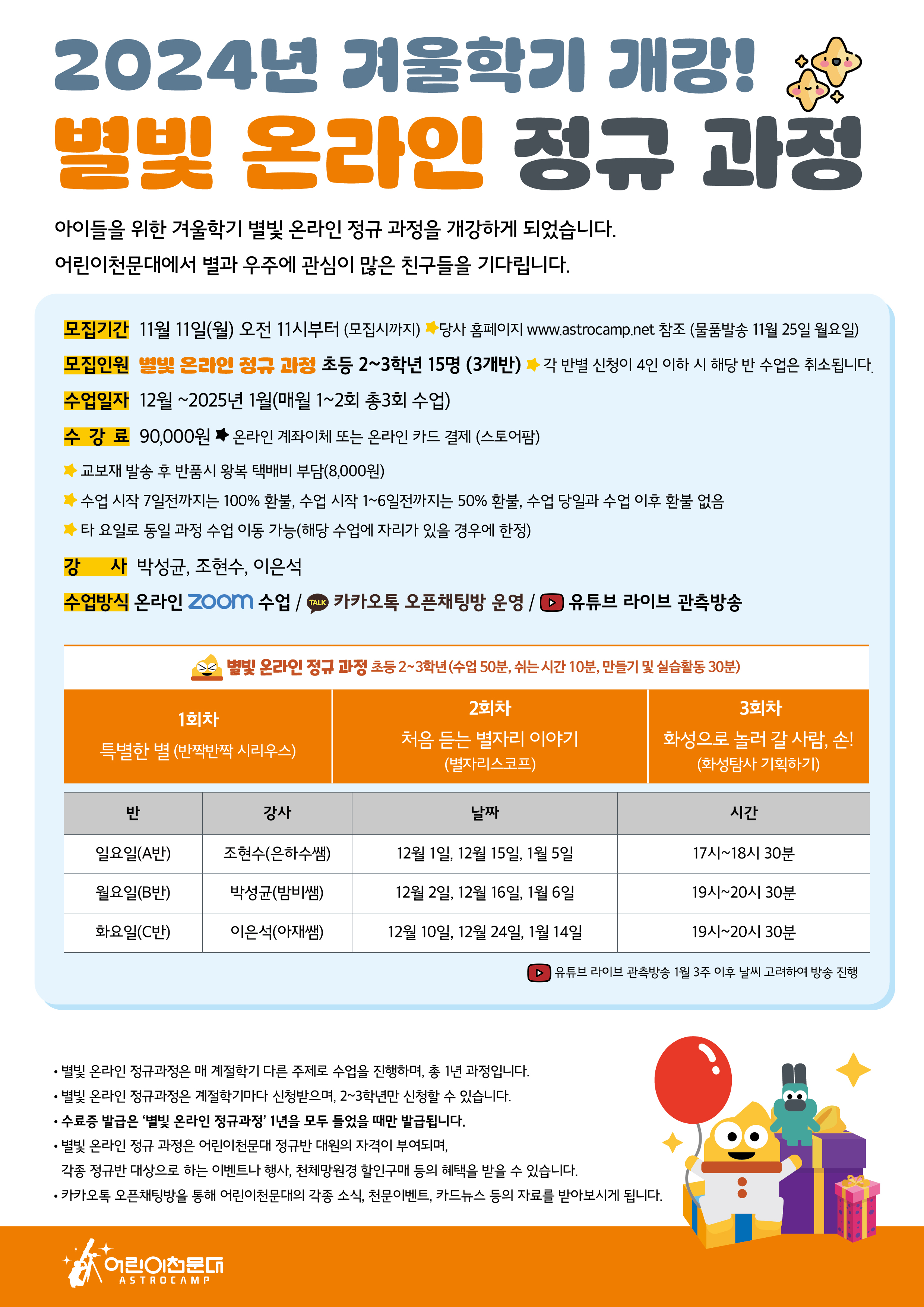 [겨울학기] 별빛 온라인 정규 과정 안내