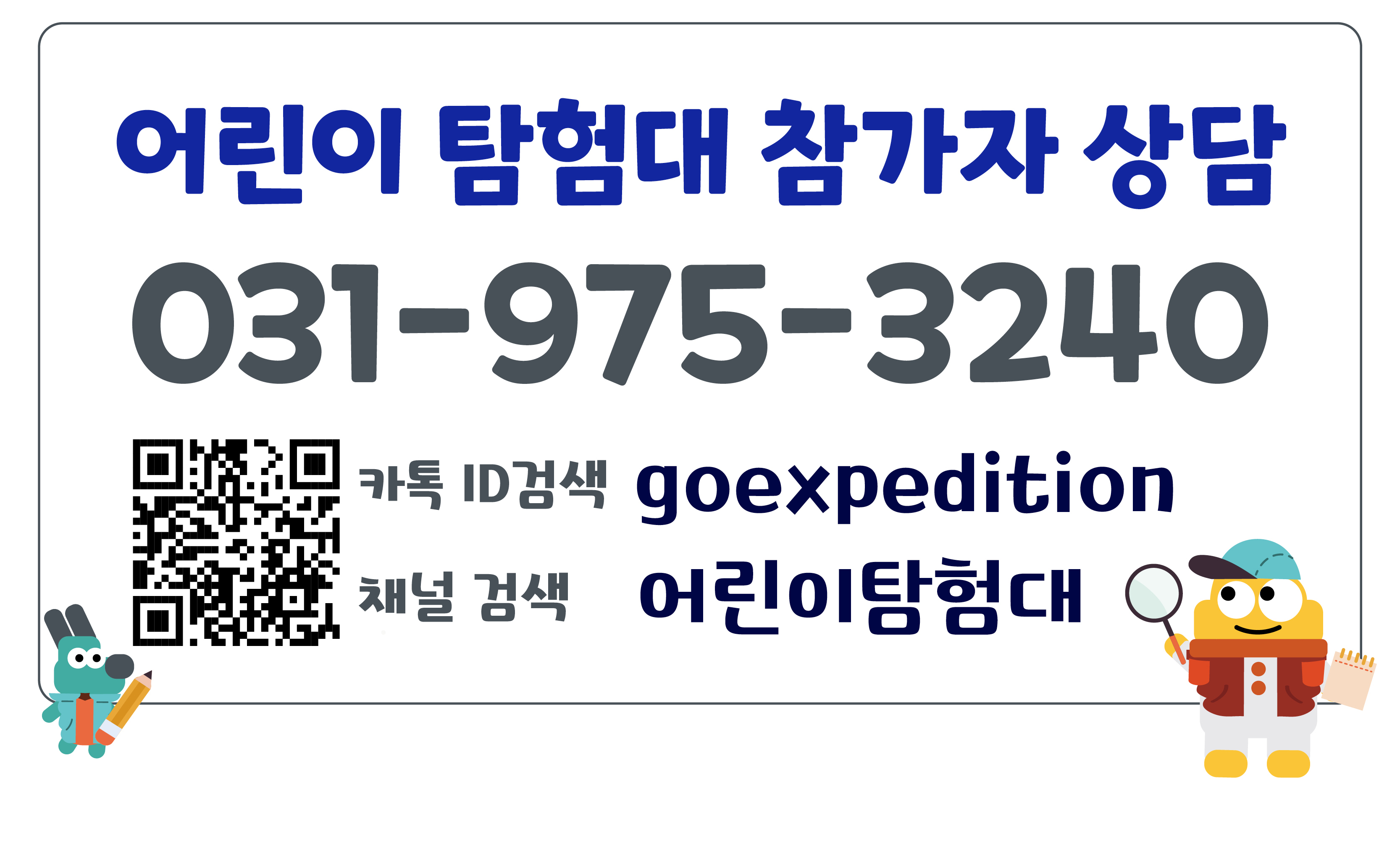 자세한 상담 및 문의는 어린이천문대 본사(031-975-4244) 또는 어린이탐험대(031-975-3240)으로