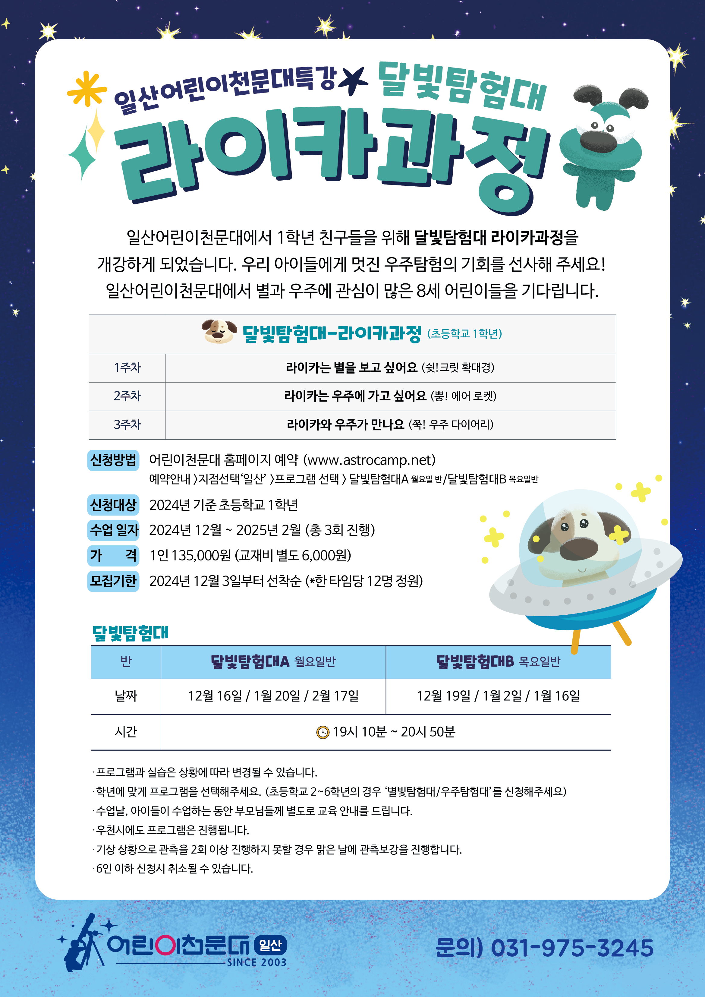 ※ 자세한 상담 및 문의는 일산어린이천문대 (031-975-3245)로 연락주시기 바랍니다. ※ 예약신청은 12월 3일부터 선착순으로 진행됩니다.