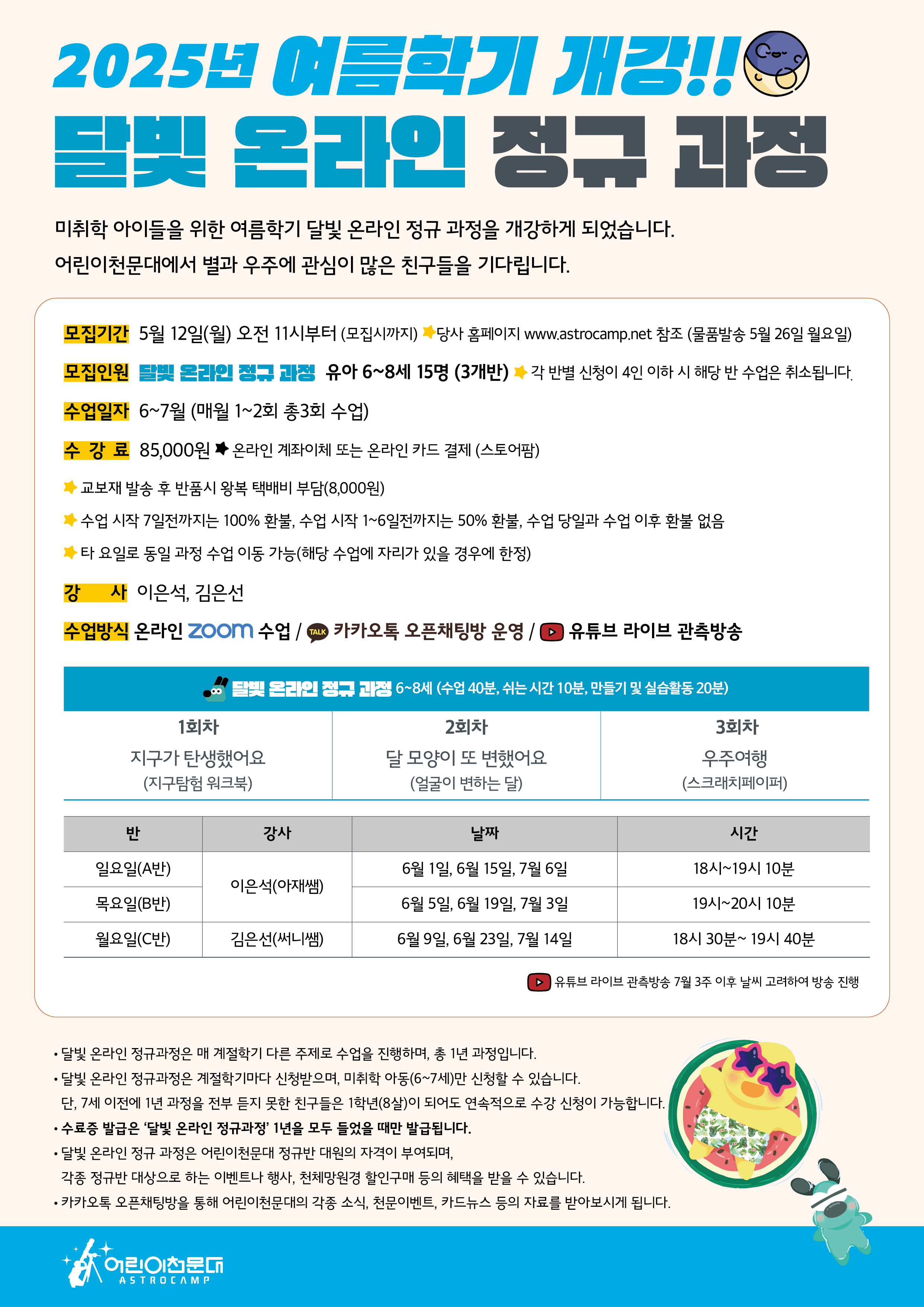▼ 달빛 온라인 정규 과정 (유아 6~8세)※ 유튜브 라이브 관측방송 7월 3주 이후 날씨 고려하여 방송 진행