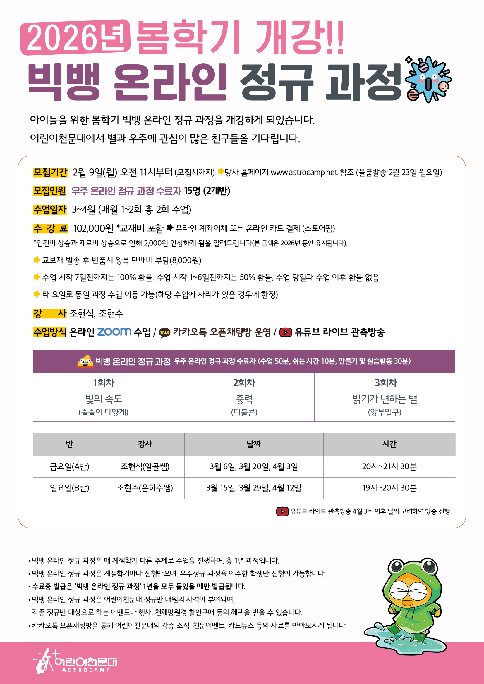 [봄학기] 빅뱅 온라인 정규 과정 모집 안내