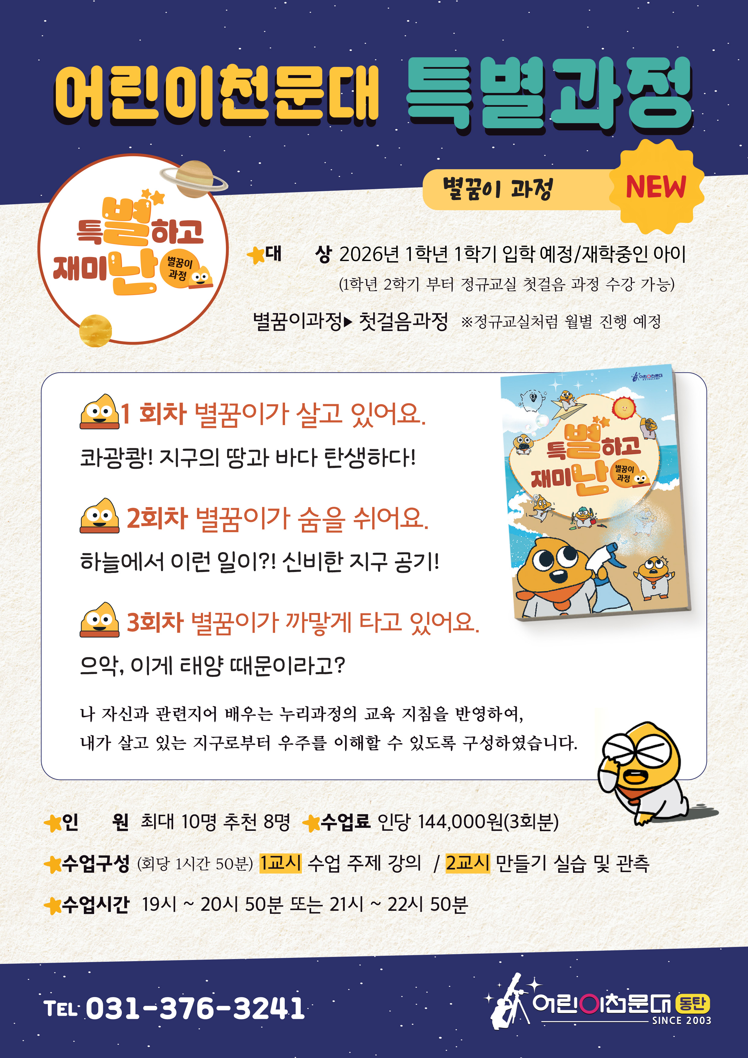 ※ 자세한 상담 및 문의는 동탄어린이천문대 (031-376-3241)로 연락주시기 바랍니다. ※ 해당 프로그램은 26년도 초등학교 1학년 대상 프로그램입니다.