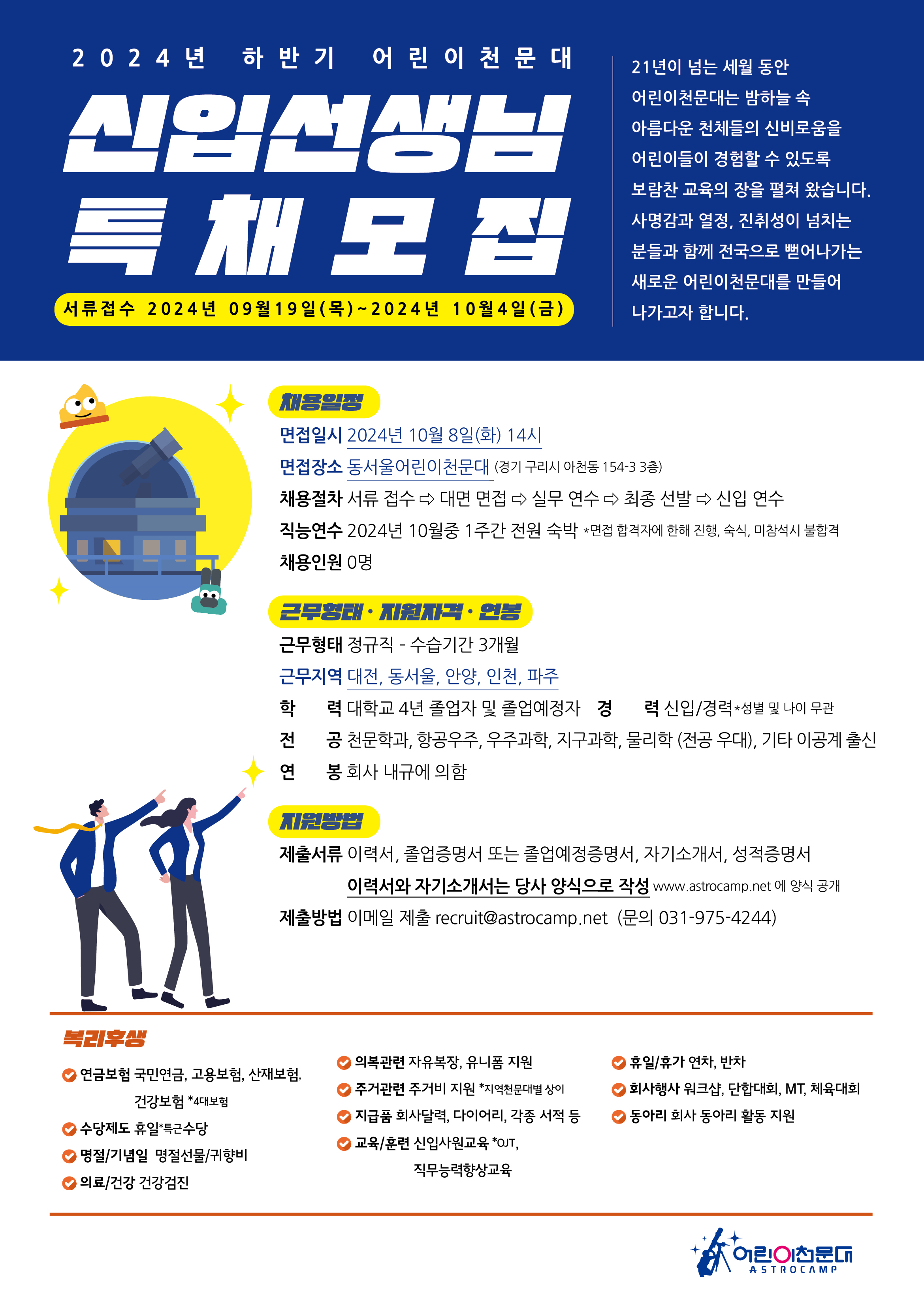 접수 메일 : recruit @astrocamp.net 문의 : 031-975-4244