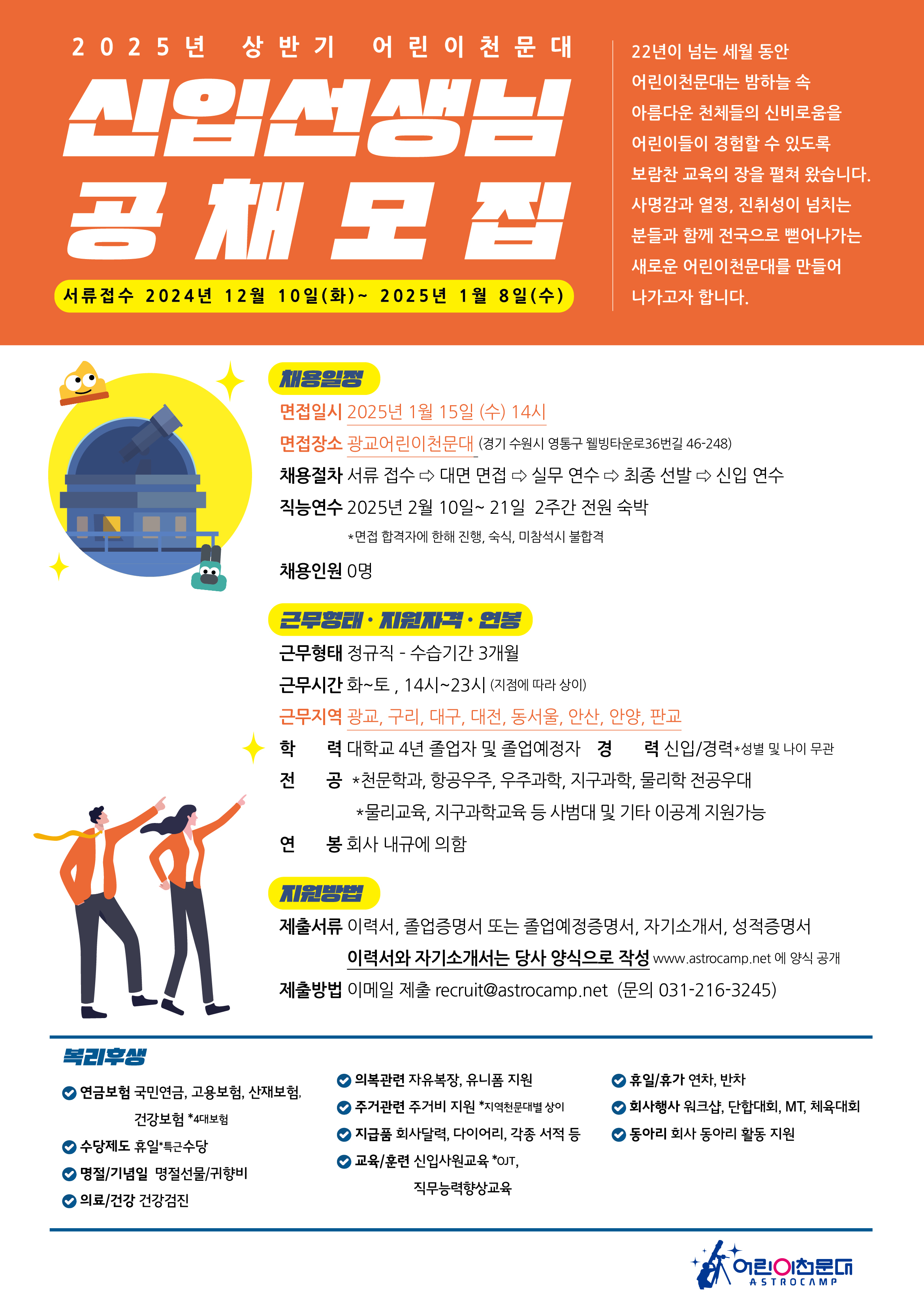 2023년 신입선생님 하반기모집 공고 [분당어린이천문대] - 마감
